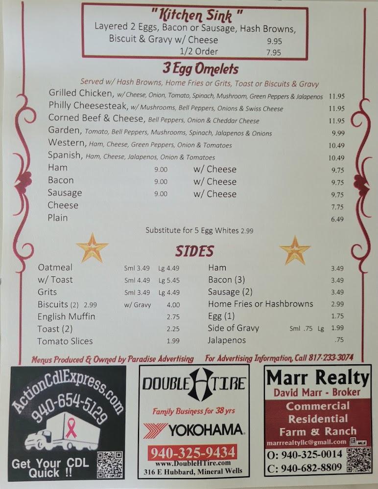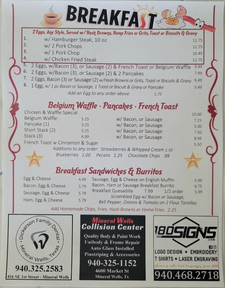 Welcome to Jimmy's Cafe, your beloved local spot in Mineral Wells! This independent cafe has been serving the community breakfast and lunch for decades, now under new ownership since 2017. Enjoy a comforting morning coffee or indulge in a delightful weekend brunch with family and friends. Our menu boasts quality food at unbeatable prices, featuring Southern specialties and an array of delicious desserts. With options for dine-in, takeout, and delivery, we cater to everyone’s needs, including wheelchair accessibility and ample parking. Stop by Jimmy's Cafe today—where great taste and community come together!