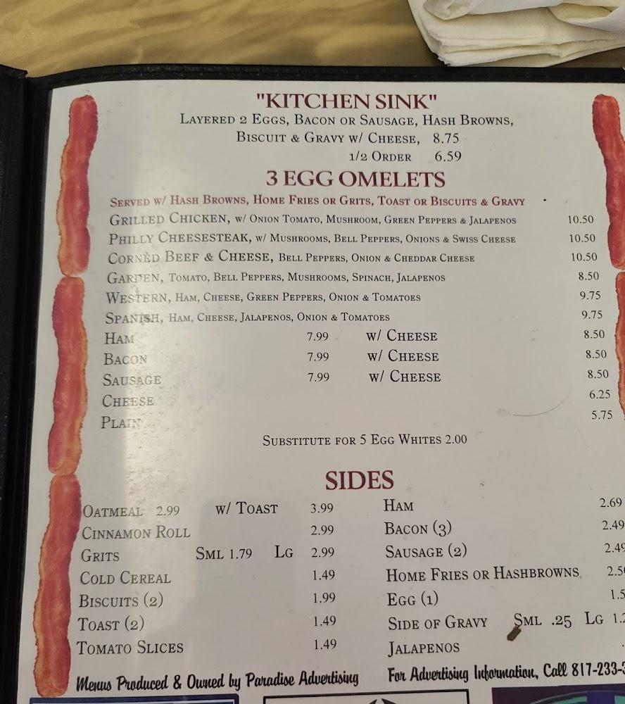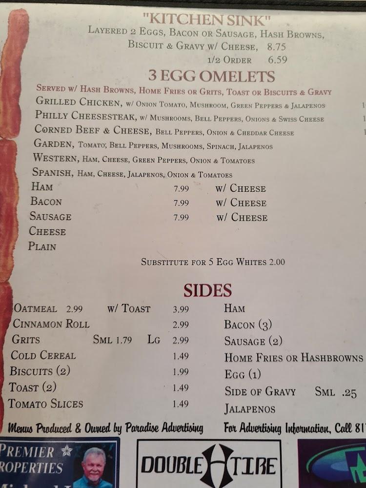 Jimmy's menu showcases classic American comfort food, with a strong emphasis on breakfast dishes available all day. Signature items include chicken fried steak, hearty omelets, and fluffy pancakes, sure to please any palate.